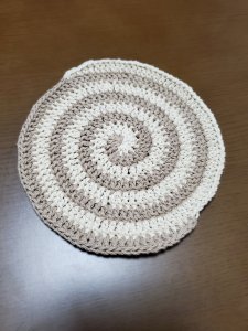 ブラウン系で統一したらカフェ風でかわいいかなぁと思ってコツコツ編んでいます。